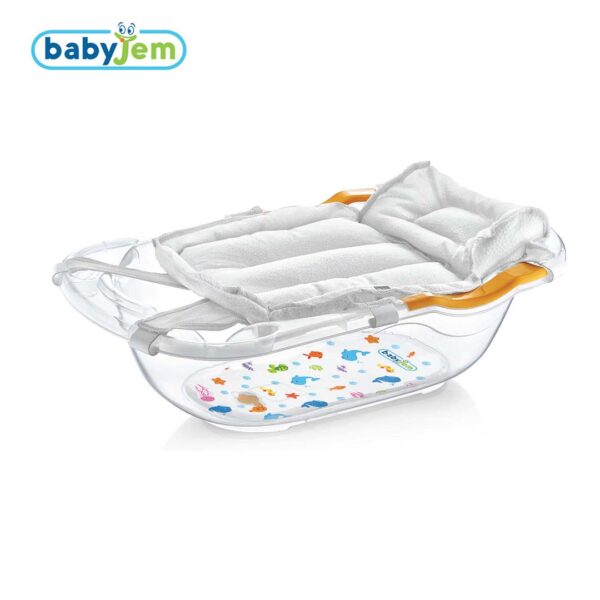 يمكنكِ تثبيت الشبك بسهولة في حوض استحمام طفلكِ باستخدام الملحقات البلاستيكية على الجانبين
