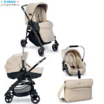 عربة بنظام سفر ثلاثي قابل للعكس بهيكل من الألومنيوم. آلية تثبيت فائقة البساطة للمكونات. نظام فتح وإغلاق تلقائي يحافظ على وضعية مستقيمة. مقبض قابل للتعديل. فرامل مركزية. مسند ظهر ومسند للساقين قابلان للتعديل. غطاء قابل للإزالة جزئيًا أو كليًا. سهل الحمل بفضل العجلات الأربع المفردة.