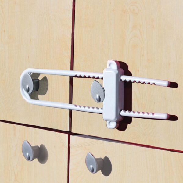 مصمم لقفل الخزائن التي تحتوي على أغراض قد تُسبب ضررًا للأطفال. إنه متين ومرن. يسهل على البالغين فتحه، ولكنه صعبٌ على الأطفال أيضًا. إنه عمليٌّ للغاية وفعّال.